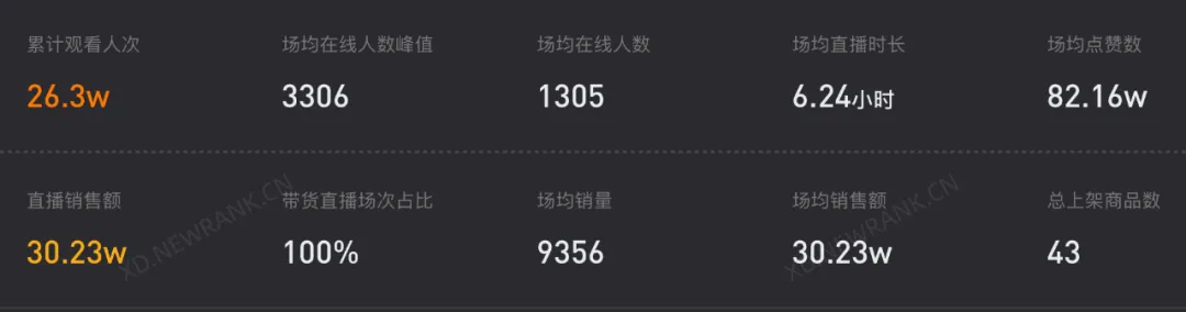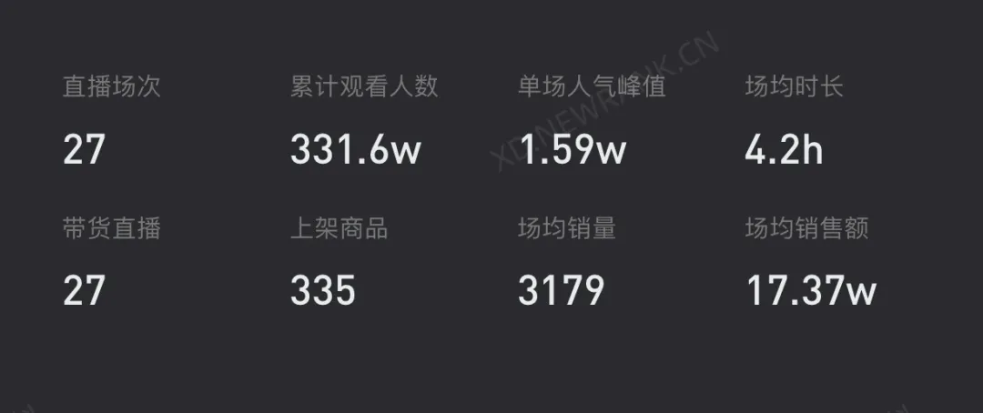 開播至今,東方甄選直播27場,累計觀看人次331.6萬,單場人氣峯值1.59萬,場均銷售額17.37萬元。