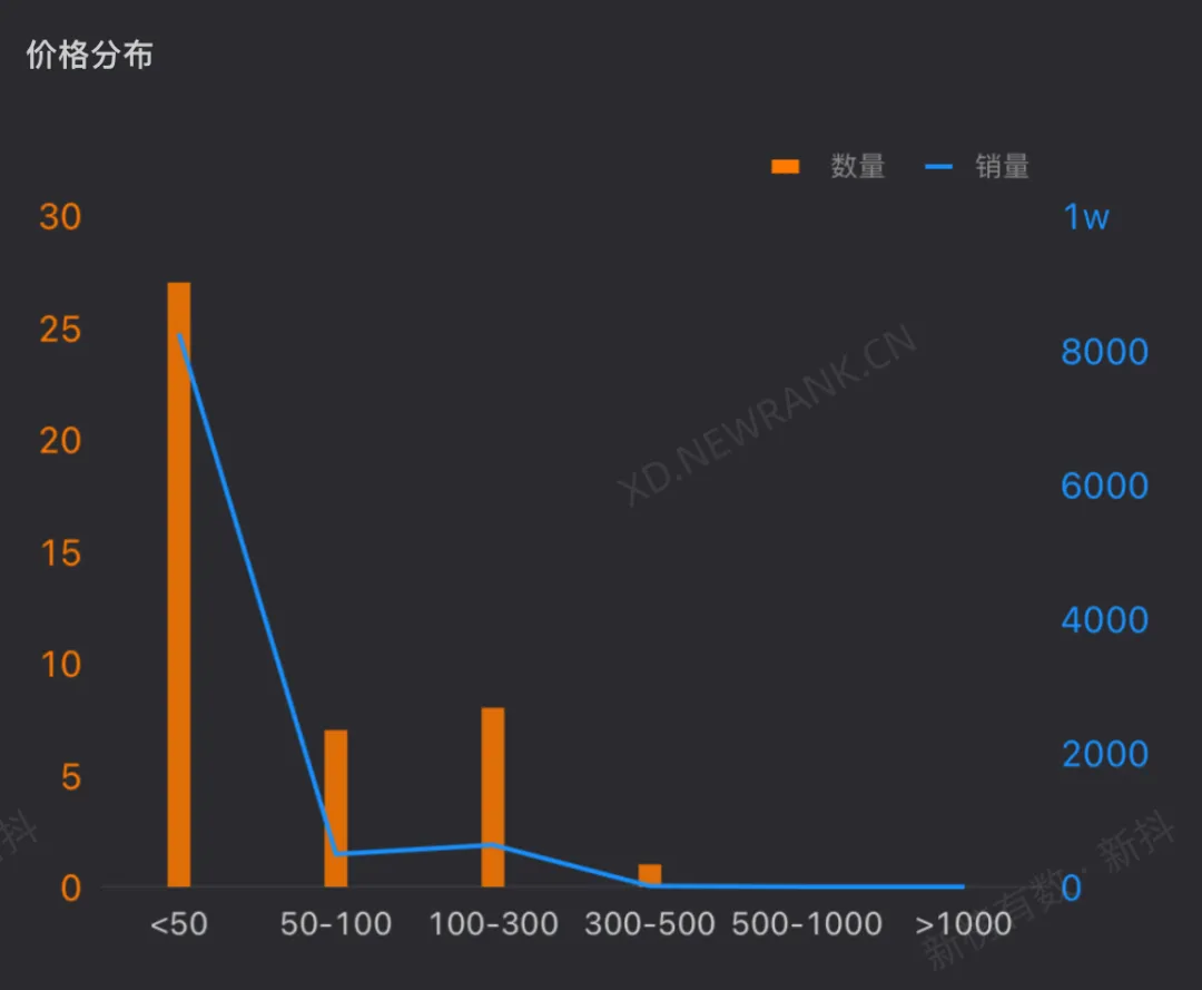 截至2月17日,東方甄選共計售出1.5萬件單價小於50元的商品;3200餘件單價50至100元區間的商品;1500餘件單價100至300元區間的商品;而價格超過300元的商品銷量幾乎可以忽略不計。