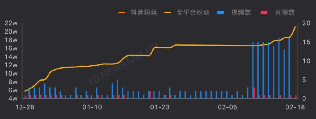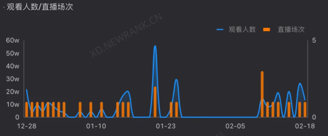 從觀看人次表格可以看出,東方甄選開播後,觀看人次一度走低;直至1月21日迎來最高55.7萬人次;但春節假期過後至今,直播間觀看人數平均20餘萬人次。