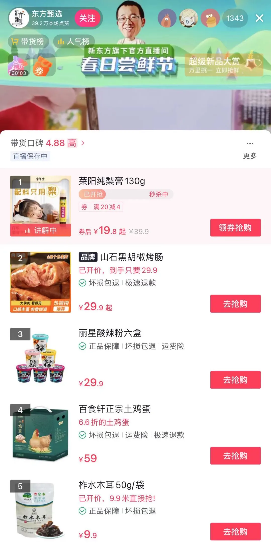 這一兩個月下來,東方甄選更傾向於售賣低價商品。