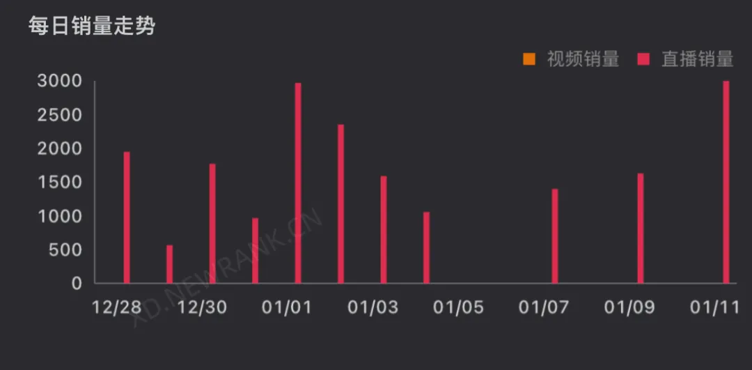 開播首兩週,東方甄選日直播銷量最高為1月11日的2995件,平均日銷量約為2000件。