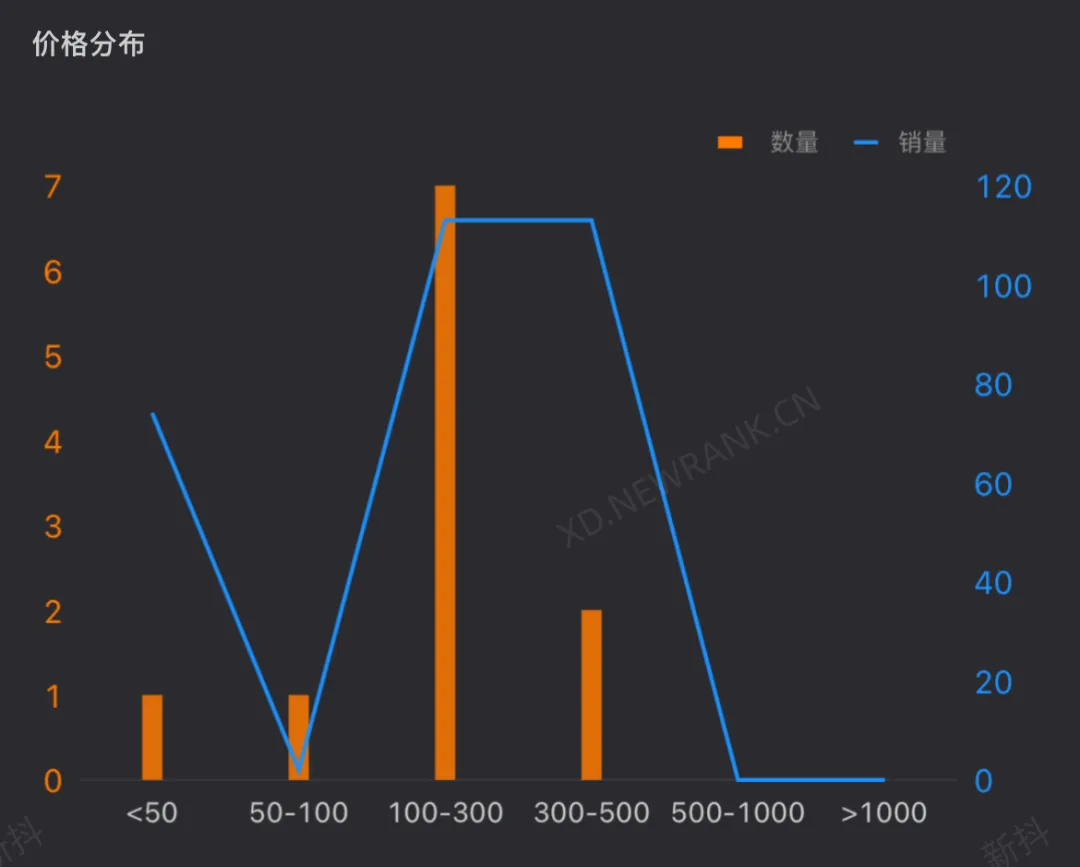對比開播首日和最近一次直播相關數據,東方甄選開播時銷量不高,但是所銷售商品單價較高;而2月17日的直播中,銷量較高,但商品主要以低於50元為主。
