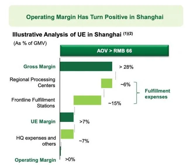上述數據,不是梁昌霖給予最佳季度業績稱號主要原因——叮咚買菜表示,區域(上海地區)已於12月份實現盈利,整個長三角地區也在第四季度實現UE(單位經濟模型)翻正,“不久的將來將在全國實現全面盈利”。