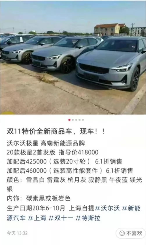 品牌創立三年,微博上的廣告位買個不停,但依然沒逃脱旗艦車型被鹹魚倒爺骨折促銷的事實。