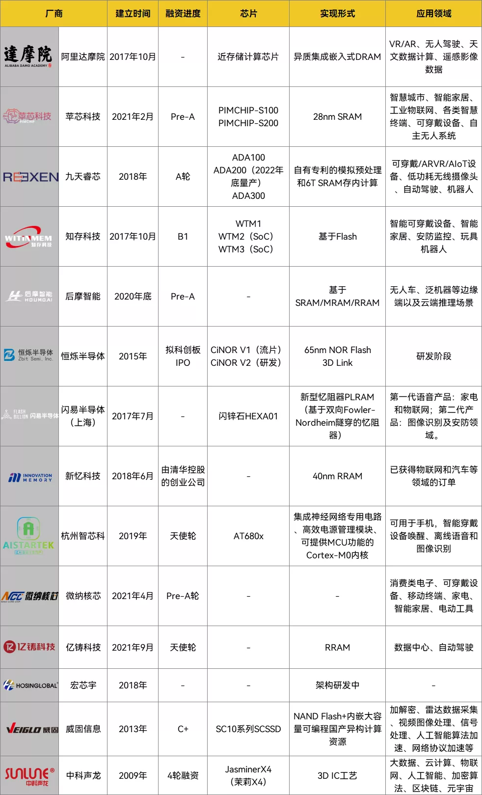 國內主要存算一體芯片企業情況,製表丨果殼硬科技