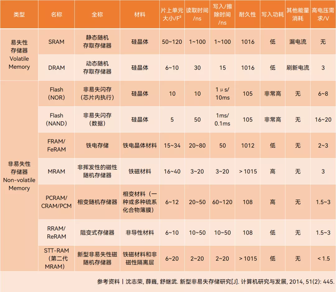 不同介質類型存儲器對比,製表丨果殼硬科技