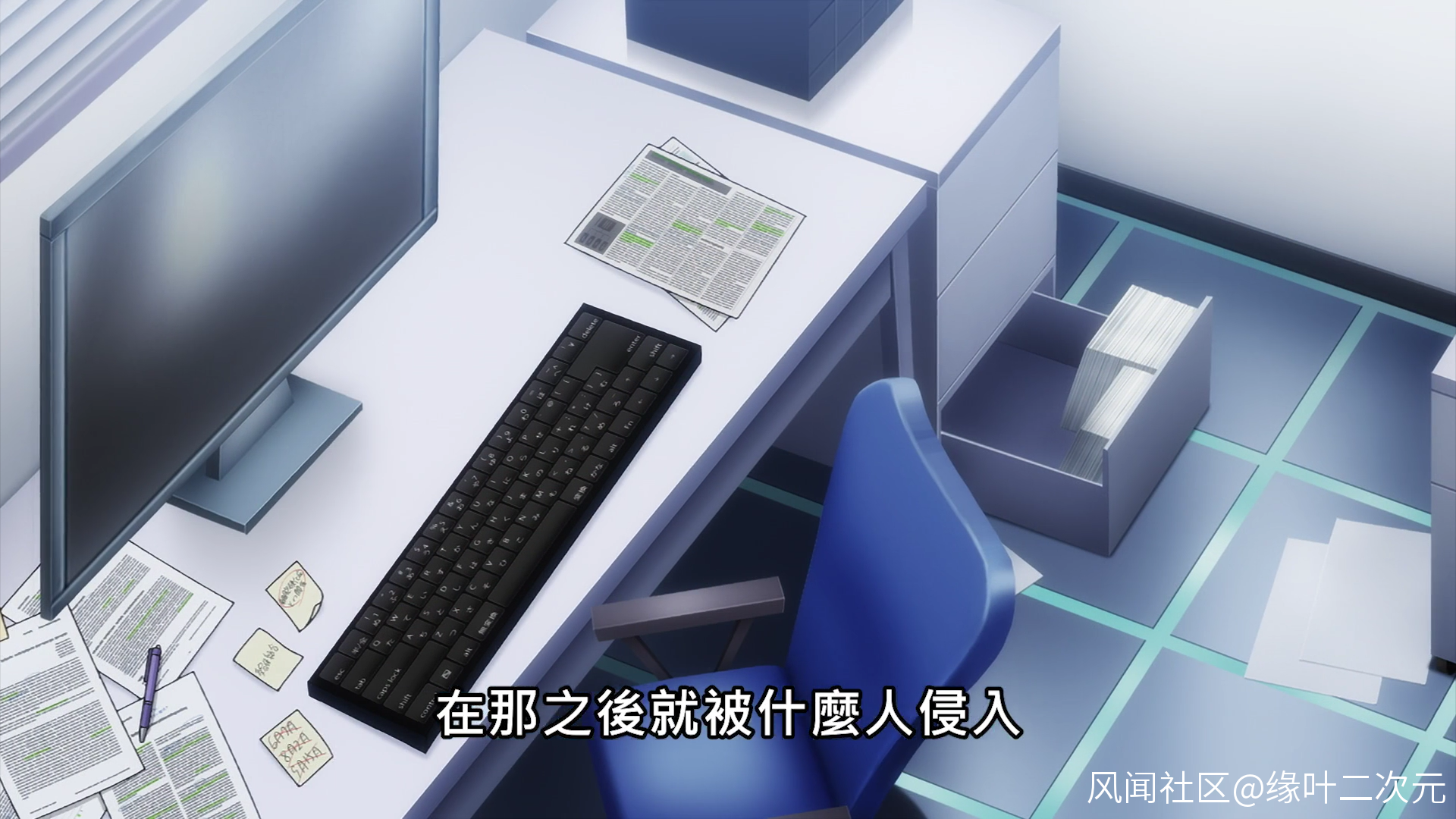 1、在《終末的後宮》第二話11分鐘左右周防美來和水原憐人來到了橘繪理沙消失前所在的研究室(從圖片來看,其實研究室或者説工作室並不是特別大)。