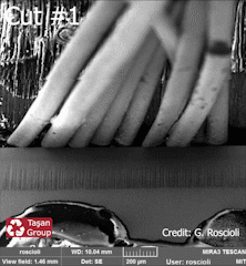 為了解釋為什麼會這樣,研究團隊開始試着模擬剃鬚的裝置,並加上了掃描電子顯微鏡來觀察切割的過程。