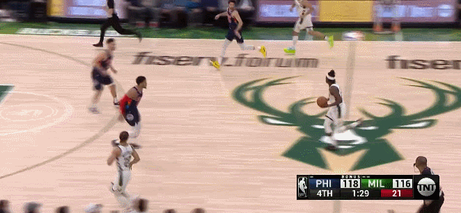 但是在那之後,雄鹿接近4分鐘沒得分,直到終場前27秒,米德爾頓才在費城防三分放兩分的情況下,突到內線拿了2分。