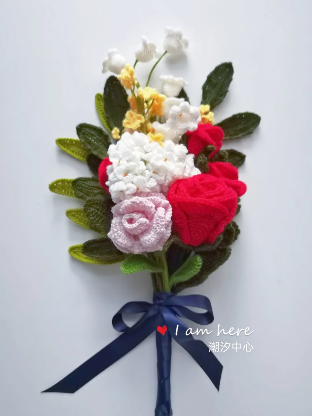 絨線花束裏,包括玫瑰、月季、鈴蘭、繡球、月桂和橄欖6種花型,分別象徵着友愛、堅韌、幸福、團結、勝利與和平。