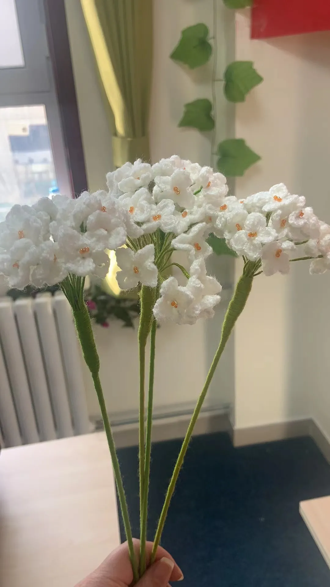 因為織物的特性,鈎針使用錯誤,還會直接影響花束的美觀度。“標準尺寸的小花,鬆緊度適中,所以會微微卷曲,跟真花一樣鮮活。一旦鈎針的尺寸不對,把花織小了,它會變得又扁又硬;把花織大了,又會跟泡發了一樣。”