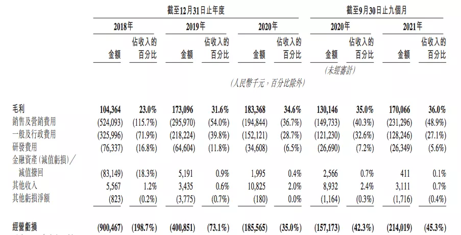 截至2021Q3,快狗打車最新數據的營收為4.73億元,毛利率增長至36%,虧損則達2.14億元,虧損佔比總營收再增至45.3%,虧損再次拉大。其中,銷售及營銷費用為2.31億元,佔比總營收約48.9%,同比2020Q3的1.5億元同比增長了54%。