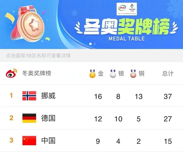 冬奧會順利落幕,穩坐金牌榜第一的國家是挪威。它以16金8銀13銅的絕對優勢佔據了金牌榜和獎牌榜的第一位。