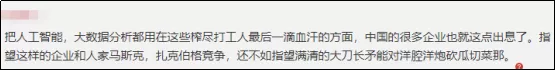 呵呵,説這話的人還真是天真,天下烏鴉一般黑,放眼全世界,把人工智能和大數據應用於榨乾打工人最後一滴血的資本家,都不在少數。