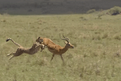 獵豹大哥一上場,看見短跑競賽隊中的羚羊,就忘記“友誼第一,比賽第二”的規則,開始進入攻擊對手的捕獵模式。