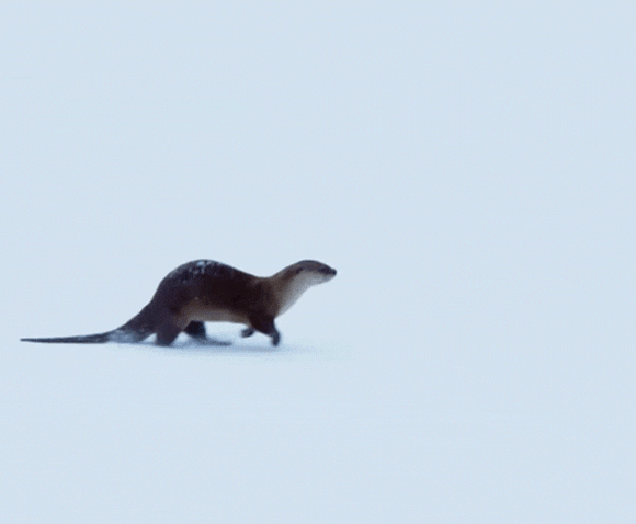 滑之前先向前奔跑,製造衝擊速度後,再收起手腳,以尾巴控方向前滑動。