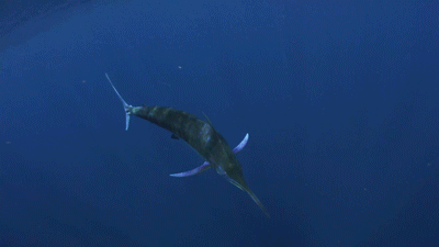 作為藍槍魚的親戚,旗魚在此次游泳比賽中緊跟在藍槍魚的後面。