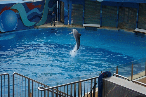 也許是看到海豚的完美表演,感覺自己技不如人,水獺選擇直接躺平啦。