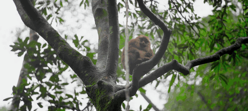 猴子在橫斜的樹枝上奔跑,動作輕盈利索,如走平地。