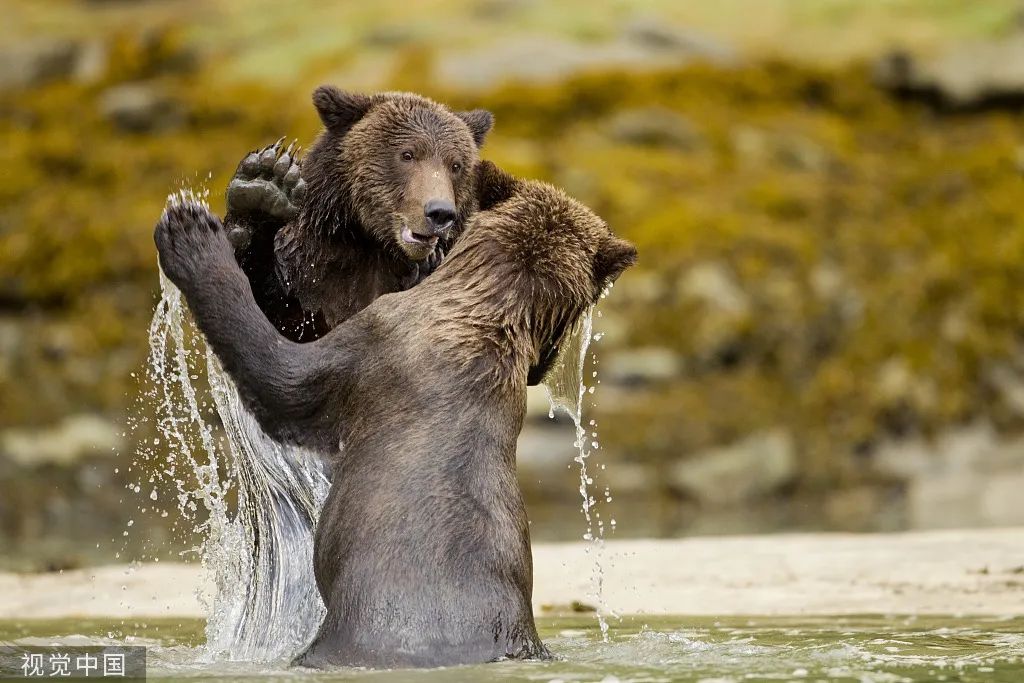 雙方兩足站立,前肢相互包着對方,看誰先把誰摔倒在地上。