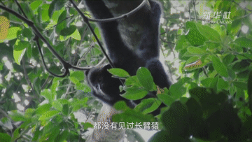 而我們的高低槓大王長臂猿,這邊也是技術嫺熟,穿越在高高低低的樹枝叢中,兩臂交互擺動,攀枝騰躍前進。