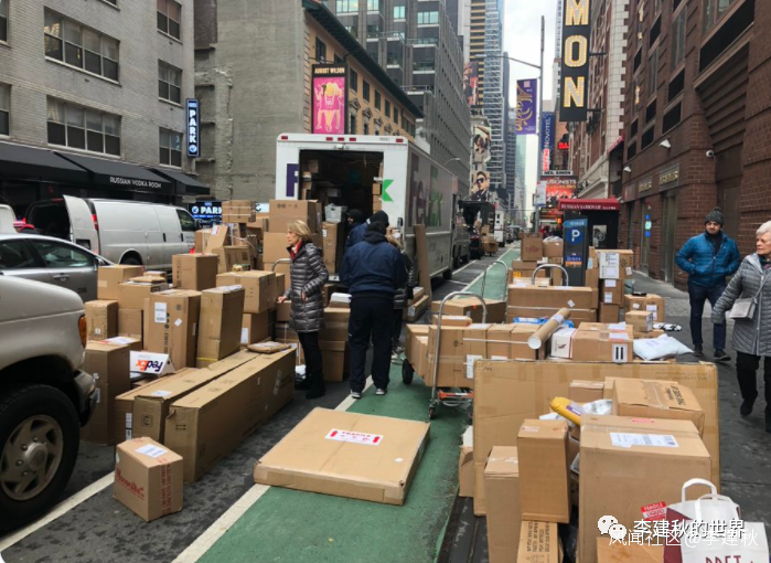 紐約市一直擁堵的不行,當時的市長是白思豪,白思豪推動了這個項目,主要是想減少紐約市的交通擁堵,尤其是送貨卡車擁堵的問題,紐約的運貨卡車動不動就是這樣的,直接把街道堵的死死的: