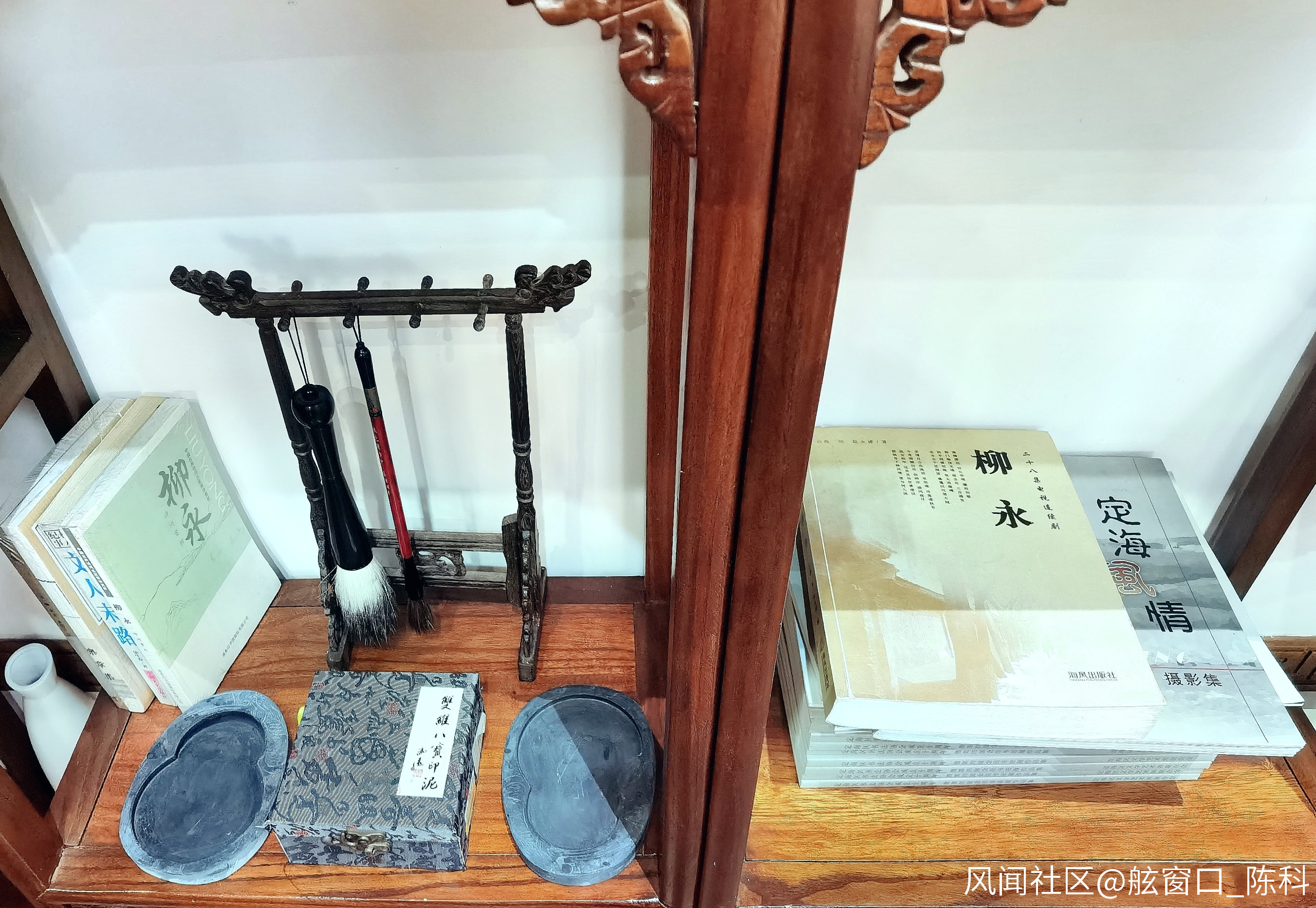 與戰友白馬一起遊覽柳永文化廣場、參觀柳永紀念館等。白馬為中國作家協會會員,舟山市作家協會主席,研究撰寫了22萬字並公開出版發行12000冊的《柳永傳》。白馬系柳永文化廣場、舟山名人館、三毛紀念館建設專家組成員和主要建議人、策劃人。圖片有柳永《煮海歌》詩碑。柳永紀念館2樓設詩歌學術交流區,配有大型電子閲讀器,可快速觸屏分類瀏覽柳永詩詞。