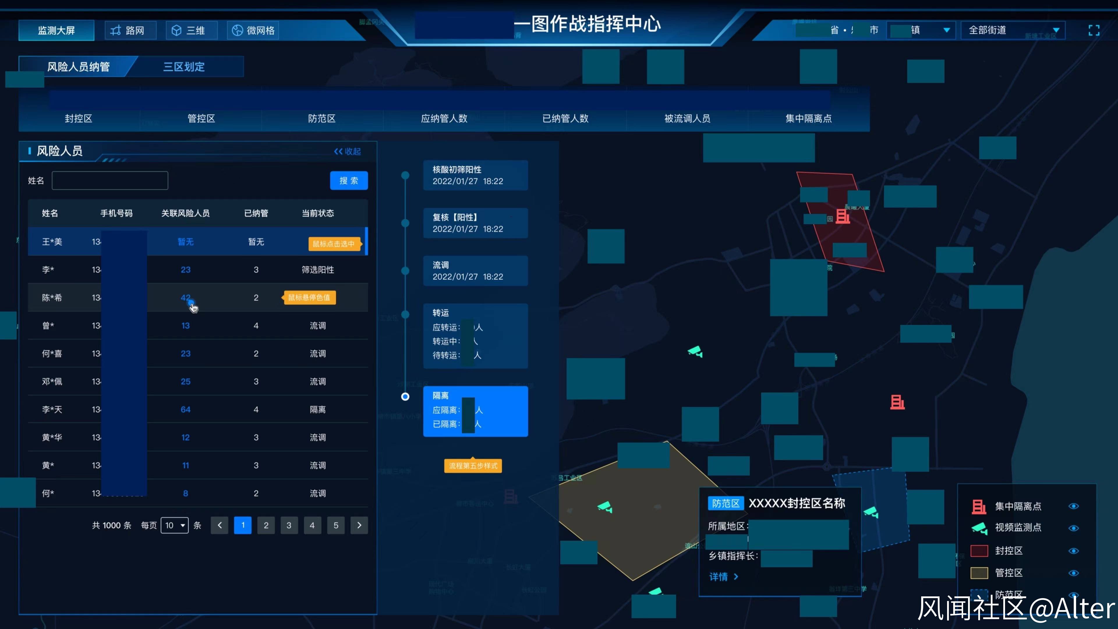 還是以平安智慧城市的“抗疫超腦”為例,平時可以藉助“一屏掌控”對各個節點的異常行為進行監測,根據風險程度生成摸排順序清單;一旦疫情出現可以藉助“一圖作戰”自動劃定封控區、管控區和防範區,同時對抗疫資源、人員調配、作戰方案等進行科學部署。