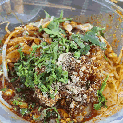 除了單一的炒米粉和炒年糕,近幾年也流行全家福套餐:米粉、年糕、寬粉、蟹排、魚排、炒饢全部拌在一起;配上酸菜、芹菜,香辣酸爽;再喝一口快樂肥宅水,快樂來得就是這麼容易。