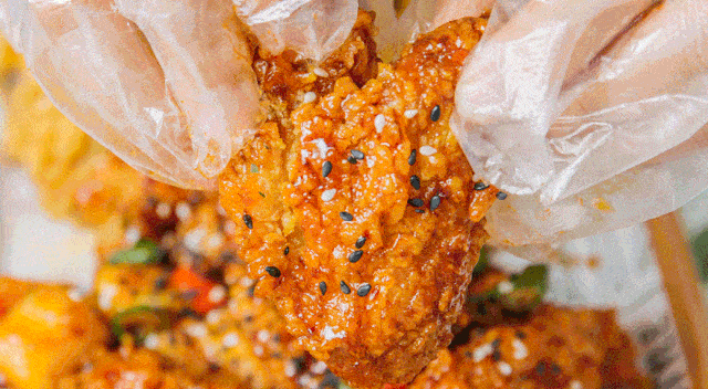 在外脆裏嫩,口感香脆的無骨雞腿肉上,淋上甜辣醬或是蜂蜜芥末醬,撒點辣椒粉,用手撕開一塊雞腿肉,熱氣從條條分明的肉絲之間冒出,肉質軟嫩,每一口都是享受!