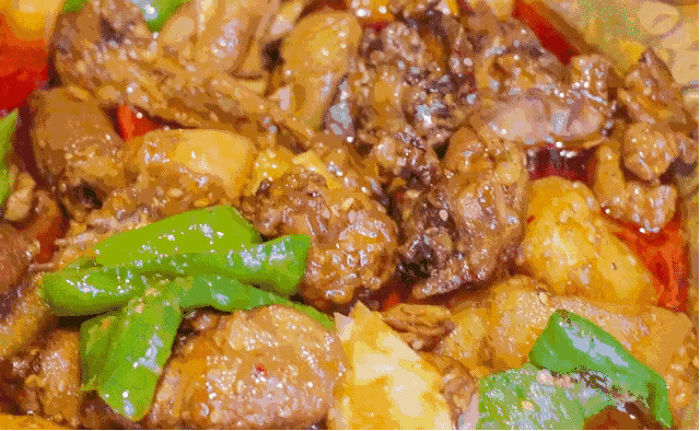 大盤雞除了有軟嫩多汁的雞肉之外,還有新疆人酷愛的土豆塊,在高温翻炒下的土豆散發着清香,充分釋放了香甜的味道;還有辣意十足的青椒、紅椒和辣皮子,以及用來調味的大葱和蒜。
