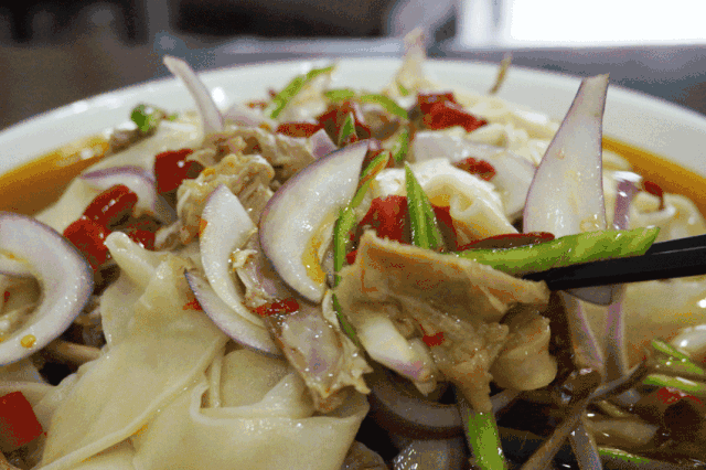 新疆丫頭子、兒娃子哪個不喜歡擀麪皮,牛筋面?別説九零後、零零後了,七零後的哥哥姐姐們都酷愛澆滿辣椒油的擀麪皮和牛筋面,拌一拌,紅油裹“衣裳”。