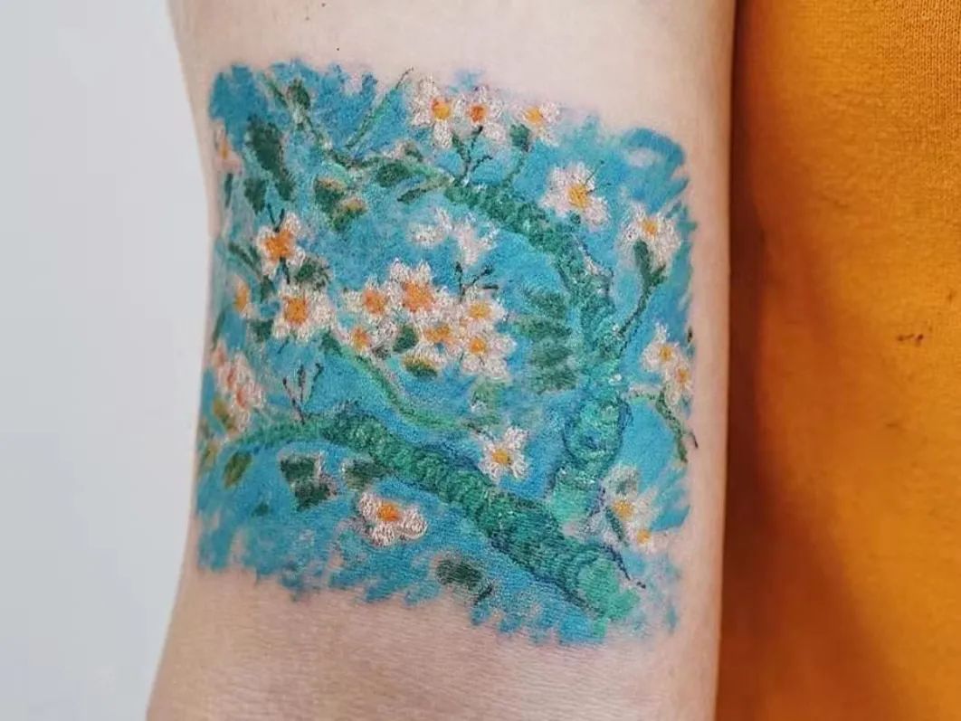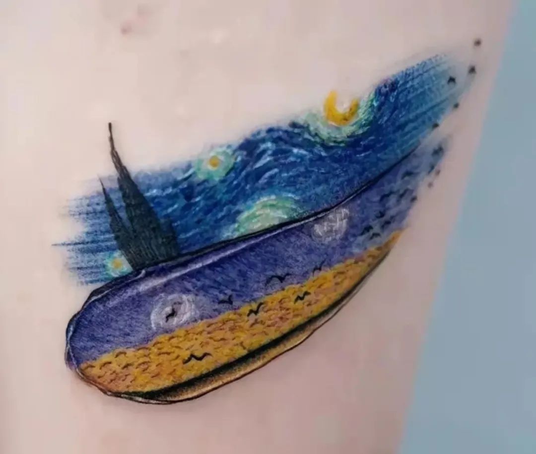 油畫紋身的難度很高,需要極強的構圖能力、色彩把控能力、油畫質感的還原能力和紋身師的再創作能力。