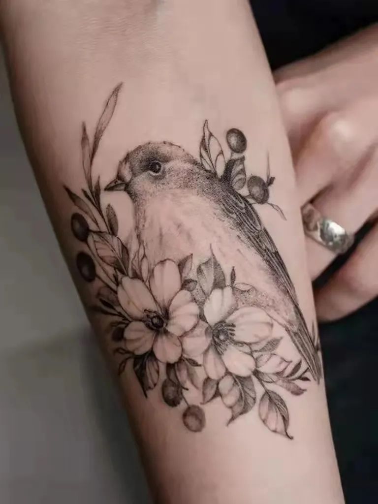 在紋身師yarina.tattooing(Ins名)的作品中,草木花鳥是永恆的題材。