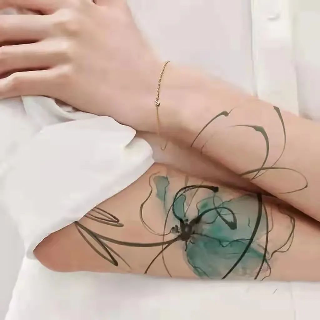 線條與水彩的混合,飄逸夢幻,像融化的顏料在皮膚上打濕的觸感。