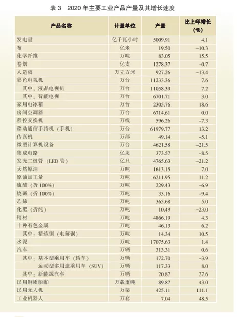 下圖是吉林省2020年的主要工業產品,