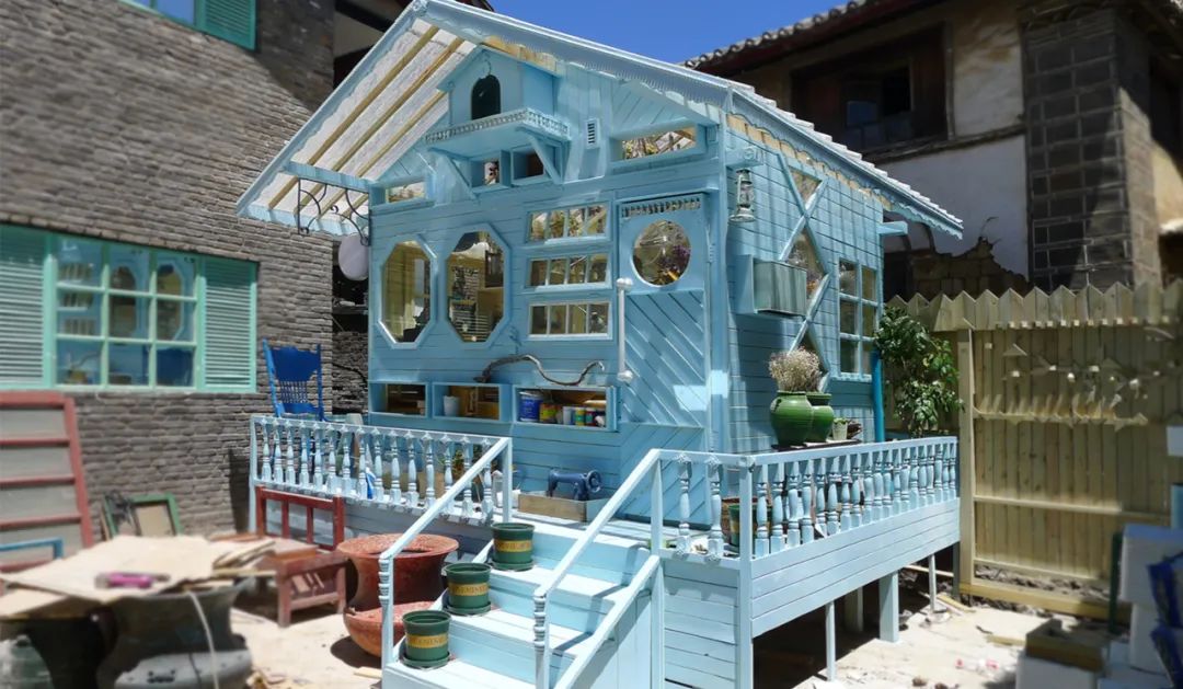 還賦予了它新的故事,因為這個房子是用鐵網做的,特別漏雨,所以它叫“漏雨美術館”。