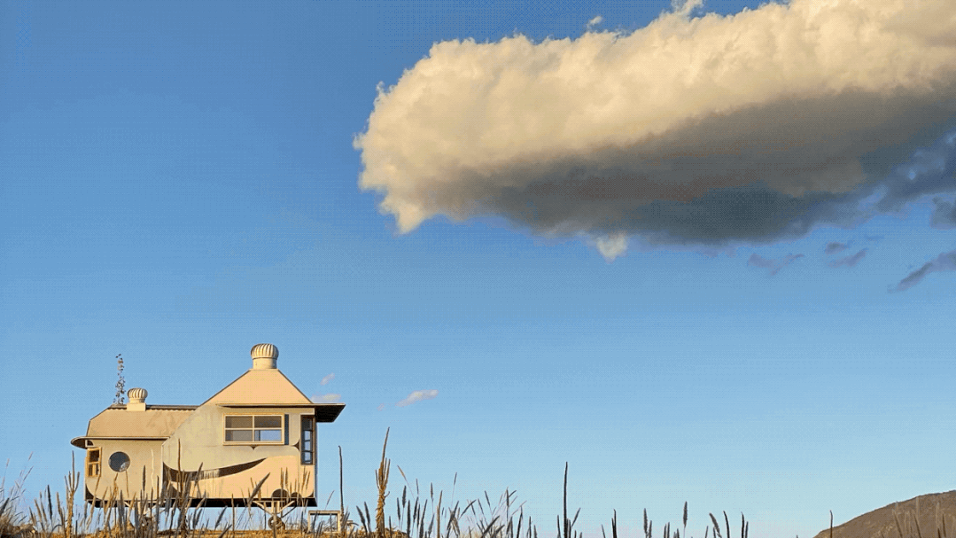 這樣的場景是無法人為製造出來的,幻想一下,這個叫“武士”的房子如果是處在一個灰濛濛的天空下面,它就沒有這樣的效果。