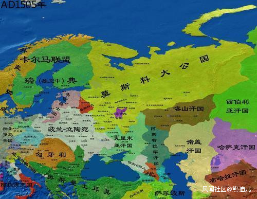 十四世紀中後期,隨着中國明朝的建立,蒙古人的勢力在歐亞一帶的勢力均遭到了不同程度的打擊,此時金帳汗國的統治也走到了盡頭,莫斯科公國開始興起。莫斯科靠近歐洲,遠離金帳汗國的統治中心—薩萊,又有大片的森林沼澤地做掩護,因此這裏成為了原基輔羅斯公國人的避難所。