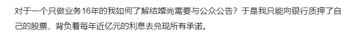而為了維持公司的繼續運轉,他們倆只好質押自己所有的股票,揹負每年接近 1 億元的利息。
