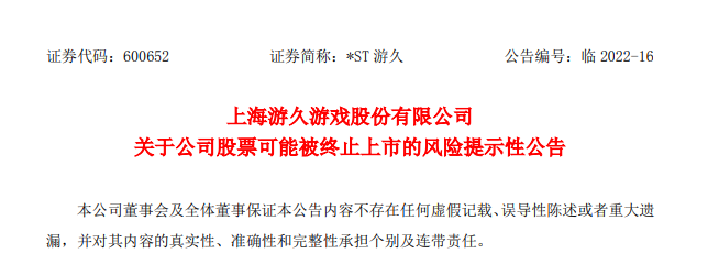 前幾天,差評君看到遊久遊戲發了個公告,內容是由於公司近幾年持續虧損,且近年營業收入低於 1 億元,所以面臨退市風險。