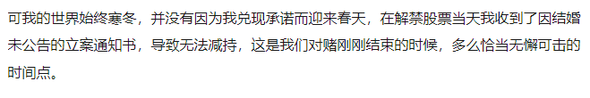 原因是他們兩人都是上市公司的大股東,結婚時卻沒有及時履行對外披露義務,於是在 2016 年 3 月被監管部門立案調查了一年。