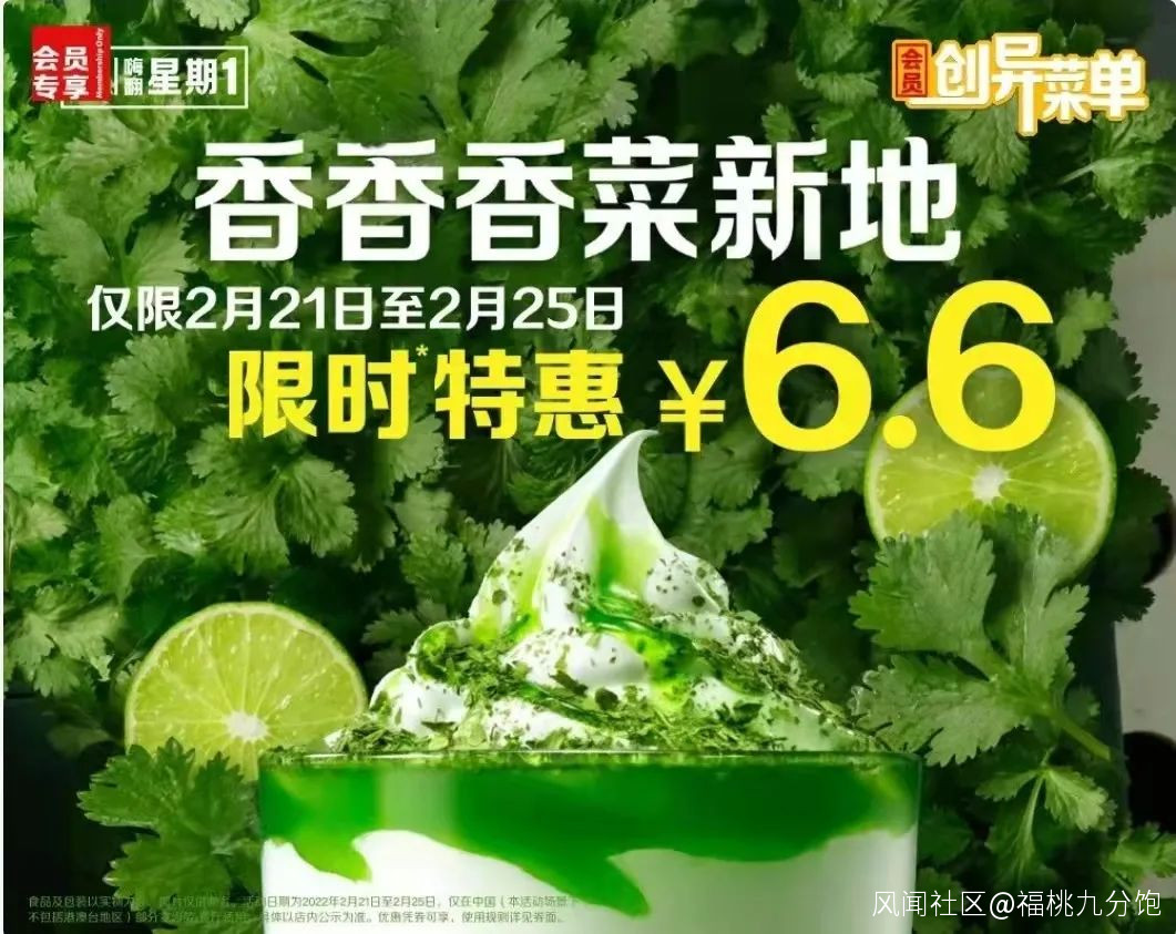 本福桃編輯部香菜代言人氣得吃不下飯,轉頭就跑去麥當勞買了窺視已久的香菜新地,試圖表示抗議。