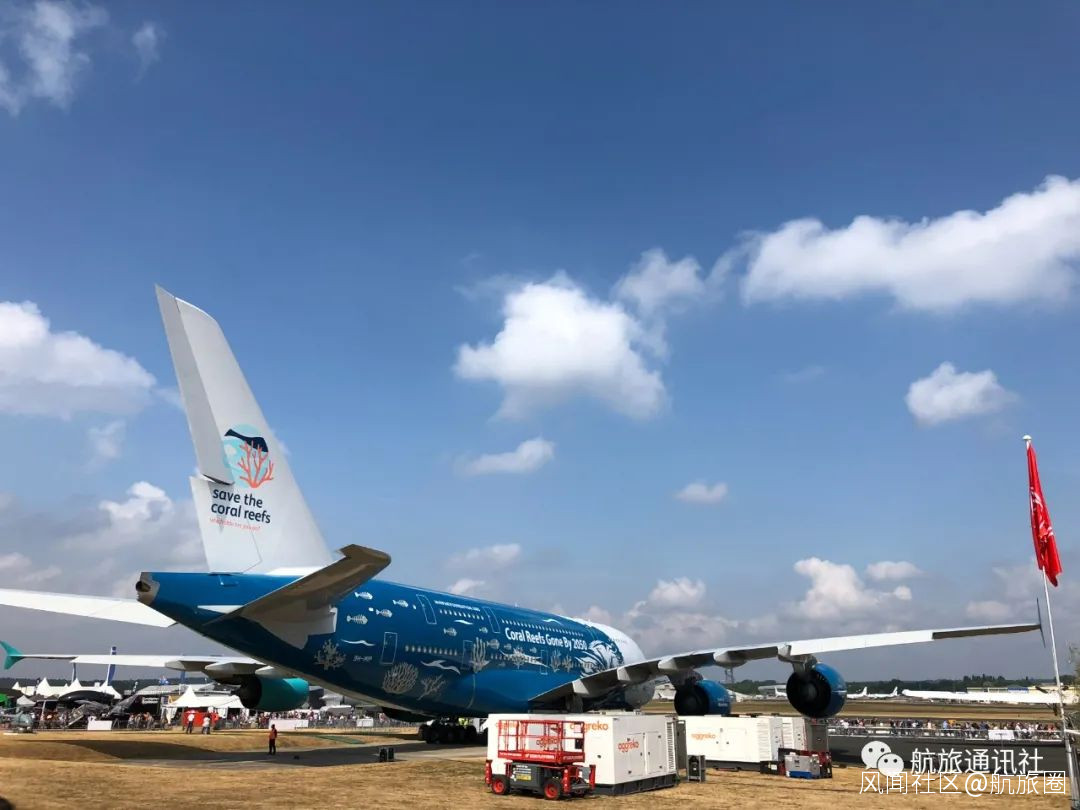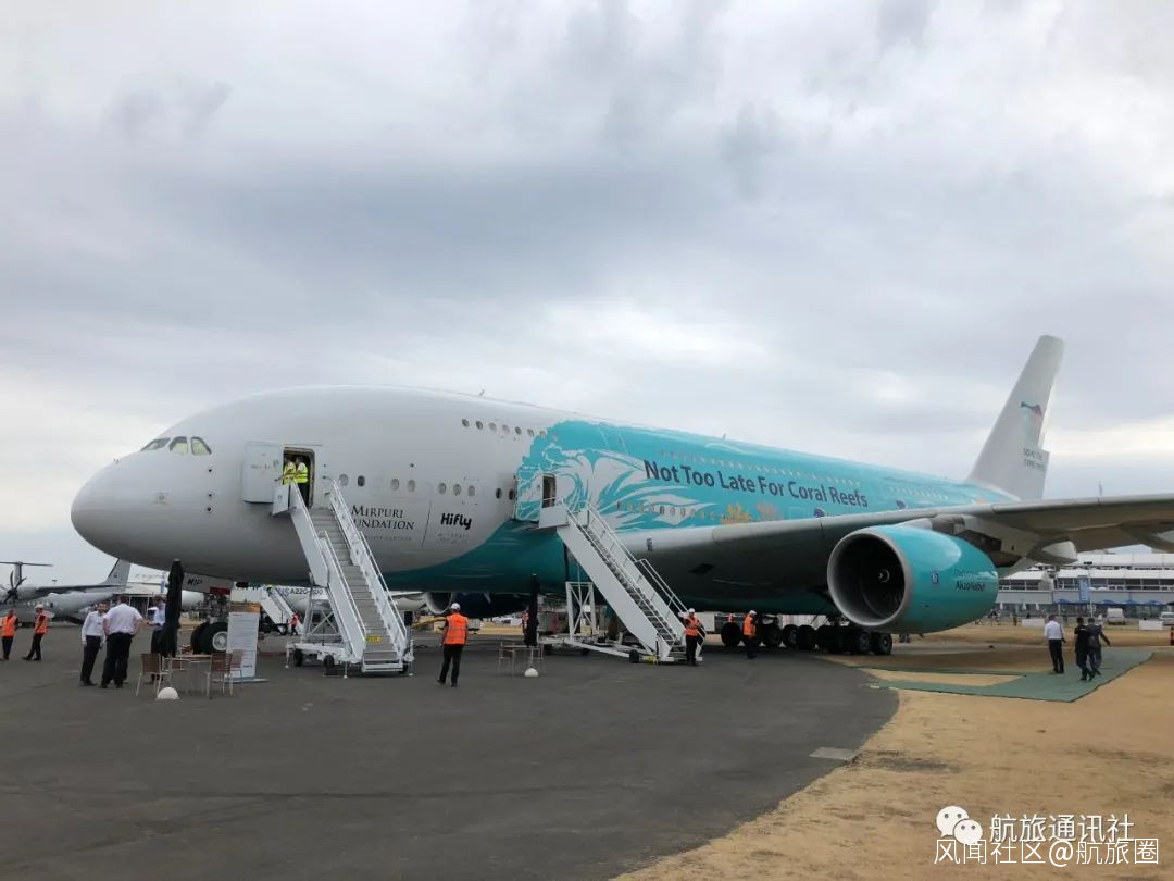 小圈曾在2018年範堡羅航展上參觀了哈飛航空的A380客機。該客機原註冊號為9VSKC,為新航A380的3號機。這架客機保留了原新加坡航空的內飾和座椅,但機身塗裝則更換為“拯救珊瑚礁”的特別塗裝。