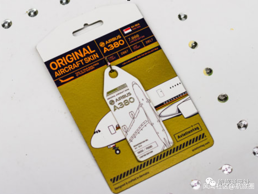 如此巨大的機身如果就此被廢棄也是相當可惜,後來,一家德國Aviationtag公司有了新的想法,將新航A380的一號機(MSN003)的機身材料製造成可掛在揹包上的身份牌,當成紀念品銷售,並且還對其數量進行了限定,只有7000個。