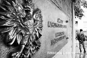 8月11日,一名俄羅斯特警在波蘭駐俄大使館外守衞,以防波蘭外交人員被毆事件再次發生。