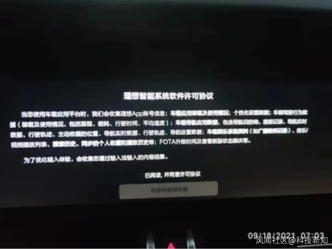 據報道,理想汽車在9月推送的一版OTA升級中,明確表示將收集App賬號信息、導航數據以及搜索歷史等敏感信息,且該版升級似乎並未向用户提供“拒絕選項”,不同意將無法繼續正常使用車輛。