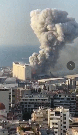 其實這則視頻是2020年8月4日,黎巴嫩首都貝魯特港口堆積的2700噸硝酸銨發生爆炸,這場爆炸造成78人死亡,4000多人受傷,爆炸強度相當於4.5級地震,沖天的蘑菇雲甚至在83千米外大馬士革都能看到。