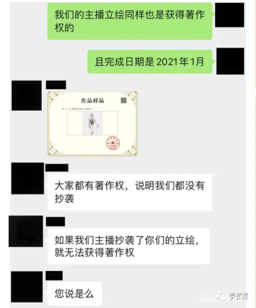 有這種想法,説白了人家運營根本不覺得有侵權,思考的立足點在於“我們就是原創的”,而不是實際進行細節對比,或是找虛擬形象的畫師進行細緻的核實,按照這名運營的意思,我們有證書,不是抄襲,要證明抄襲,你得給出有權威的證據。