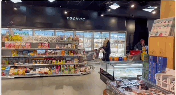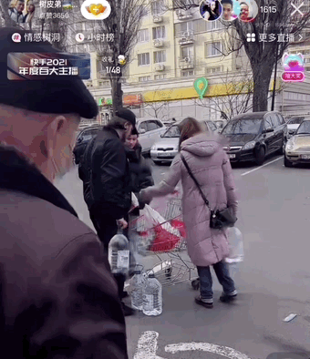 🟧 敖德薩街頭,囤物資的人。圖源快手用户@烏克蘭奧德薩户外直播(快手ID:k-19900519)
